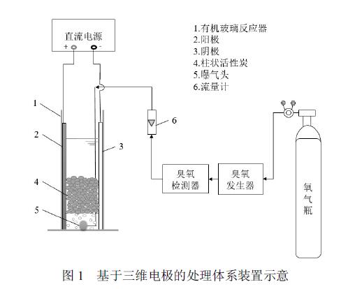 但是常見的二維電極體系,存在電極比表面積小,污染物的降解受傳質(zhì)限制,處理時(shí)間長(zhǎng),電流效率低等缺點(diǎn).在二維電極間填充活性炭、金屬氧化物等多孔顆粒材料作為粒子電極,可構(gòu)成三維電極(3D)體系.利用多孔材料的高比面積和吸附能力,可顯著強(qiáng)化污染物的傳質(zhì).此外,粒子電極上發(fā)生的一系列催化反應(yīng),如O2 電化學(xué)還原為H2O2(式(1))、H2O2被催化分解產(chǎn)生•OH(式(2)、(3))等,可有效強(qiáng)化系統(tǒng)的氧化能力.在相同的電流條件下,三維電極體系可比二維電極體系提高10%~50%的COD去除率.