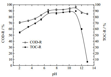 臭氧催化氧化中PH對COD去除率的影響