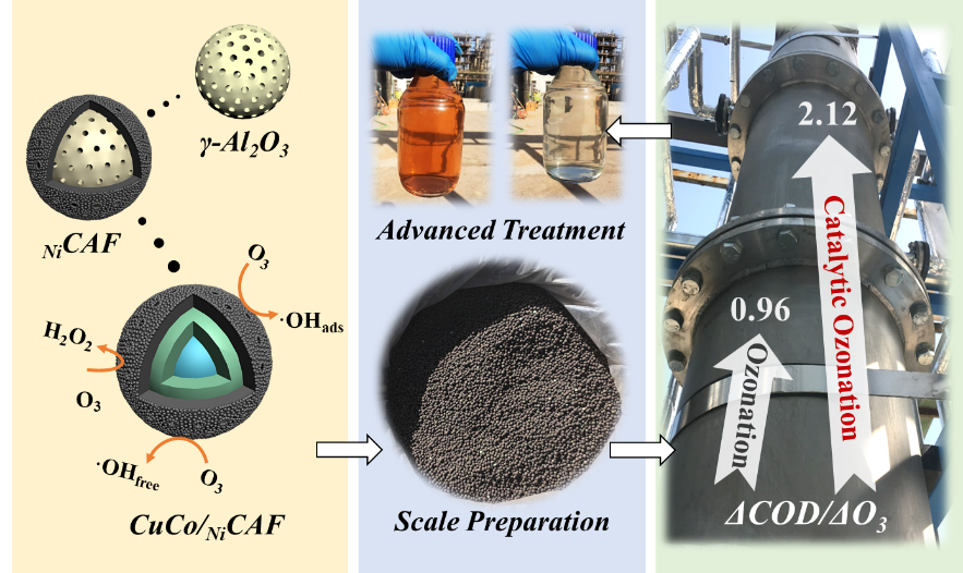 圖2 從實(shí)驗(yàn)室設(shè)計(jì)、機(jī)理研究、規(guī)模制備到實(shí)際廢水深度處理應(yīng)用